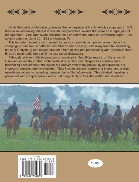 While the battle of Gettysburg remains the centerpiece of the June/July campaign of 1863, there is an increasing interest in less-studied peripheral events that were an integral part of the operation. One such event occurred the day before the battle of Gettysburg began – the cavalry action on June 30, 1863 at Hanover, Pa. This important event is worth examining more closely since it played a key role in the campaign’s outcome: it deflected Jeb Stuart’s main cavalry units away from the impending battle at Gettysburg and helped prevent it from uniting and participating with General Robert E. Lee’s main battle force until the last day at Gettysburg. Although relatively little information is contained in the official reports on the action at Hanover, especially on the Confederate side, author John Krepps has constructed a fascinating account about the action at Hanover from many previously unpublished, but important, sources often overlooked. They include soldiers’ diaries and letters, and civilian eyewitness accounts, including damage claims filed afterwards. This detailed narrative is presented with comprehensive maps that bring clarity to this little written about subject.