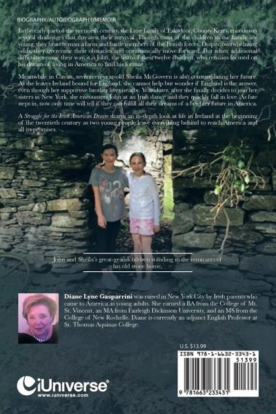 In the early part of the twentieth century, the Lyne family of Eskadour, County Kerry, encounters several challenges that threaten their survival. Though most of the children in the family are young, they bravely man a farm and battle members of the British forces. Despite overwhelming odds, they overcome their obstacles and optimistically move forward. But when additional difficulties come their way, it is John, the sixth of their twelve children, who remains focused on his dream of living in America to find his fortune. Meanwhile in Cavan, seventeen-year-old Sheila McGovern is also contemplating her future. As she leaves Ireland bound for England, she cannot help but wonder if England is the answer, even though her supportive brother lives nearby. Years later after she finally decides to join her sisters in New York, she encounters John at an Irish dance and they quickly fall in love. As fate steps in, now only time will tell if they can fulfill all their dreams of a brighter future in America. A Struggle for the Irish-American Dream shares an in-depth look at life in Ireland at the beginning of the twentieth century as two young people leave everything behind to reach America and all its promises.