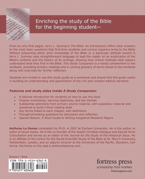 Jerry L. Sumneys The Bible: An Introduction offers clear answers to the most basic questions that first-time students and curious inquirers bring to the Bible. The Study Companion is a handy complement to the textbook, providing primary readings and a running glossary of terms keyed to the textbook along with exercises for further reflection.