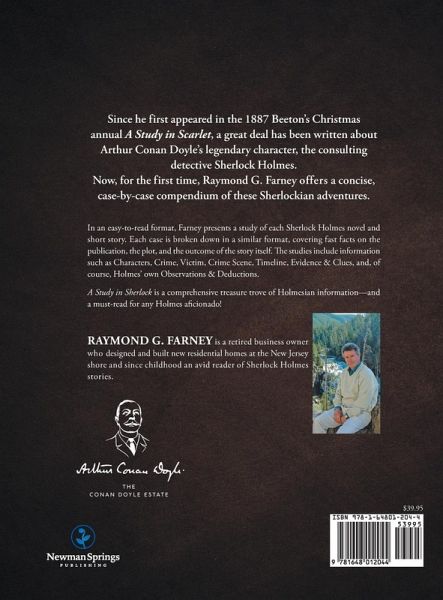 Since he first appeared in the 1887 Beeton's Christmasannual A Study in Scarlet, a great deal has been written aboutArthur Conan Doyle's legendary character, the consultingdetective Sherlock Holmes.Now, for the first time, Raymond G. Farneyoffers a concise,case-by-case compendium of these Sherlockian adventures.In an easy-to-read format, Farney presents a study of each Sherlock Holmes novel andshort story. Each case is broken down in a similar format, covering fast facts on thepublication, the plot, and the outcome of the story itself. The studies include informationsuch as Characters, Crime, Victim, Crime Scene, Timeline, Evidence & Clues, and, ofcourse, Holmes' own Observations & Deductions.A Study in Sherlockis a comprehensive treasure trove of Holmesian information-anda must-read for any Holmes aficionado!RAYMOND G. FARNEY is a retired business ownerwho designed and built new residential homes at the New Jerseyshore and since childhood anavid reader of Sherlock Holmesstories.
