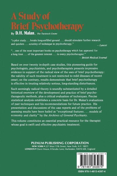 The original aim of the present work, which was initiated by Dr. Michael Balint, was to explore Brief Psychotherapy carried out by psycho-analysts who are relatively skilled and experienced. To this has been added an attempt to reconcile the 'clinical' and 'objective' approaches to psychodynamic material, by treating clinical judgements exactly as rigorously as is appropriate, no more and no less. A review of previous work leads to little definite conclusion. A complete spectrum of views can be found, from the most 'conservative' (e.g. brief psychotherapy is only effective in the mildest and most recent illnesses; the technique used should be superficial-any attempt to go 'deeper' will lead to long-term therapy; and the results are only palliative) to the most 'radical' (seriously ill patients can be extensively helped by a technique containing most of the essential elements of long-term methods such as psycho-analysis). The present work is based essentially on the therapies of nineteen patients, treated by a team of therapists under the leader ship of Dr. Balint. The study is largely retrospective, but it is designed to fill some of the important gaps to be found in the literature: 1. Detailed case histories are given of all patients treated; 2. Particular attention is paid to long follow-up; 3. A method of assessing therapeutic results has been developed which is regarded as psychodynamically valid and is based on published evidence; 4. The relation is examined between outcome and (a) the characteristics of patients, (b) the characteristics of technique.