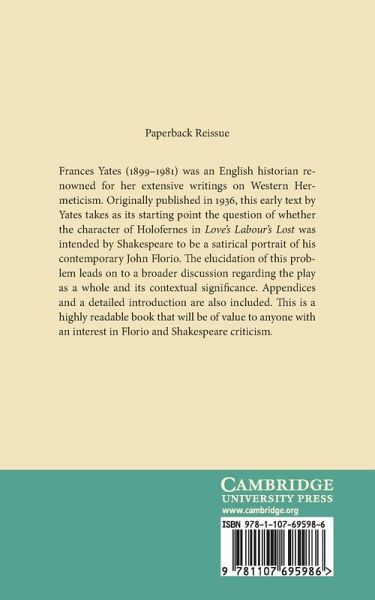 Frances Yates (1899-1981) was an English historian renowned for her extensive writings on Western Hermeticism. Originally published in 1936, this early text by Yates takes as its starting point the question of whether the character of Holofernes in Love's Labour's Lost was intended by Shakespeare to be a satirical portrait of his contemporary John Florio. The elucidation of this problem leads on to a broader discussion regarding the play as a whole and its contextual significance. Appendices and a detailed introduction are also included. This is a highly readable book that will be of value to anyone with an interest in Florio and Shakespeare criticism.