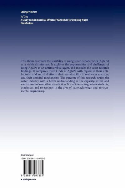 This thesis examines the feasibility of using silver nanoparticles (AgNPs) as a viable disinfectant. It explores the opportunities and challenges of using AgNPs as an antimicrobial agent, and includes the latest research findings. It compares three kinds of AgNPs with regard to their antibacterial and antiviral effects; their sustainability in real water matrices; and their antiviral mechanisms. The outcome of this research equips the water industry with a better understanding of the capacity, extent and mechanisms of nanosilver disinfection. It is of interest to graduate students, academics and researchers in the area of nanotechnology and environmental engineering.