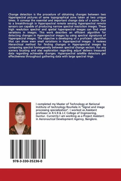 Change detection is the procedure of obtaining changes between two Hyperspectral pictures of same topographical zone taken at two unique times. It conveys the essential and important change data of a scene. Due to a breakthrough in Hyperspectral remote sensing Hyperspectral remote sensors can capable of producing narrow spectral resolution images. These high resolution spectral and spatial hyperspectral images can find small variations in images. This work describes an efficient algorithm for detecting changes in Hyperspectral images by using spectral signatures of Hyperspectral images. The objective is developing of a proficient algorithm that can show even small variations in Hyperspectral images. It reviews Hierarchical method for finding changes in Hyperspectral images by comparing spectral homogeneity between spectral change vectors. For any scenery locating and also exploration regarding adjust delivers treasured data regarding achievable changes. Hyperspectral satellite detectors get effectiveness throughout gathering data with large spectral rings.