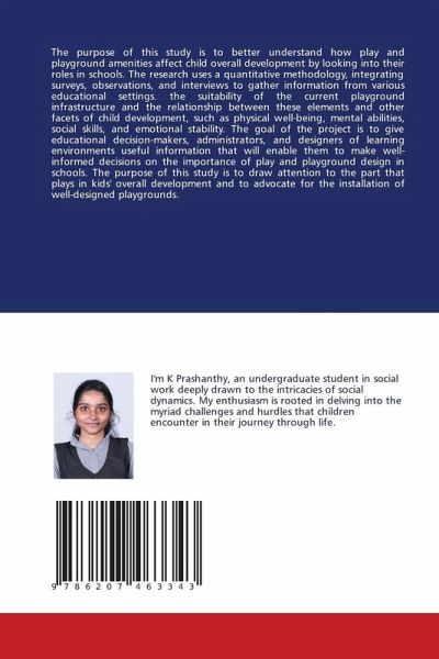 The purpose of this study is to better understand how play and playground amenities affect child overall development by looking into their roles in schools. The research uses a quantitative methodology, integrating surveys, observations, and interviews to gather information from various educational settings. the suitability of the current playground infrastructure and the relationship between these elements and other facets of child development, such as physical well-being, mental abilities, social skills, and emotional stability. The goal of the project is to give educational decision-makers, administrators, and designers of learning environments useful information that will enable them to make well-informed decisions on the importance of play and playground design in schools. The purpose of this study is to draw attention to the part that plays in kids' overall development and to advocate for the installation of well-designed playgrounds.