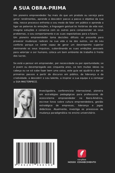 Um pioneiro empreendedor faz mais do que um produto ou serviço para gerar rendimentos, aprende a descobrir passo a passo o objetivo da sua vida, nesse processo enfrenta o seu medo de falar em público e aprende a ligar as palavras às emoções, a linguagem gestual às histórias da vida real, imagina soluções e conversa com os outros para compreender os seus problemas, o seu comportamento e as suas expectativas para o futuro.Um pioneiro empreendedor toma decisões difíceis no presente para provocar mudanças radicais na sua vida e na dos outros, sai do seu conforto porque se sente capaz de gerar um desempenho superior dominando os seus impulsos, subordinando as suas ambições pessoais para valorizar o ser humano, coloca um bom ambiente de trabalho à frente dos lucros.Se está a pensar em empreender, por necessidade ou por oportunidade; se é jovem ou desempregado aos cinquenta anos, se tem muitas ideias na cabeça ou se só sabe fazer bem uma coisa, este guia vai ajudá-lo a dar os primeiros passos a partir do discurso em público, da liderança e da criatividade, a descobrir o seu talento, a inspirar a sua equipa e a começar a SUA MASTERPIECE.