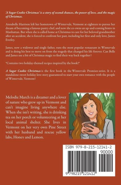 'A Sugar Cookie Christmas' is a story of second chances, the power of love, and the magic of Christmas. Annabelle Harrison left her hometown of Wintervale, Vermont at eighteen to pursue her dream of becoming a famous pastry chef, and now she co-owns an up-and-coming bistro in Manhattan. But when she is called home at Christmas to care for her beloved grandmother after an accident, she is forced to confront her past, including her first and only love, James Everley. James, now a widower and single father, runs the most popular restaurant in Wintervale and is doing his best to move on from the tragedy that changed his life forever. Can Belle and James use a bit of Christmas magic to find their way back together? *Contains two holiday-themed recipes inspired by the book!* A Sugar Cookie Christmas is the first book in the Wintervale Promises series. It is a standalone sweet holiday love story guaranteed to start your own romance with the people of Wintervale, Vermont!