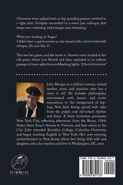 Obsession wore spiked heels as hip-grinding passion writhed in a tight skirt. Foreplay unravelled to a sweet jazz soliloquy that keeps men scheming and younger men dreaming. What you looking at, Sugar? I didn't have a quick answer as she teased with a slow buttermilk whisper, Do you like it? This was her game, and she knew it. Answers were tucked in her silk purse where love flowed and then exploded in an infinite passage of inane adjectives and flashing lights: "A Suite Invitation"