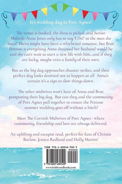 Brand new from the top 10 bestselling author of The Cornish Midwife.It's wedding day in Port Agnes! The venue is booked, the dress is picked, and Senior Midwife Anna Jones only has to say 'I Do!' to the man she loves! Theirs might have been a whirlwind romance, but Brae Penrose is everything Anna dreamed her husband would be and she can't wait to start a new life with him...and if they are lucky, maybe even a family of their own. But as the big day approaches disaster strikes, and their perfect day looks destined not to happen at all. Anna's certain it's a sign to slow things down. The other midwives won't hear of Anna and Brae postponing their big day, but can they and the community of Port Agnes pull together to make sure the Penrose summer wedding goes off without a hitch? Meet The Cornish Midwives of Port Agnes- where community, friendship and love are always delivered. An uplifting and escapist read, perfect for fans of Christie Barlow, Jessica Redland and Holly Martin!