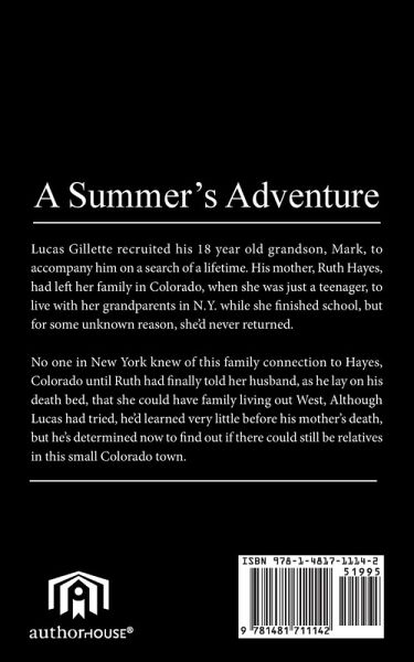 Lucas Gillette recruited his 18 year old grandson, Mark, to accompany him on a search of a lifetime. His mother, Ruth Hayes, had left her family in Colorado, when she was just a teenager, to live with her grandparents in N.Y. while she finished school, but for some unknown reason, she'd never returned, No one in New York knew of this family connection to Hayes, Colorado until Ruth had finally told her husband, as he lay on his death bed, that she could have family living out West, Although Lucas had tried, he'd learned very little before his mother's death, but he's determined now to find out if there could still be relatives in this small Colorado town.,
