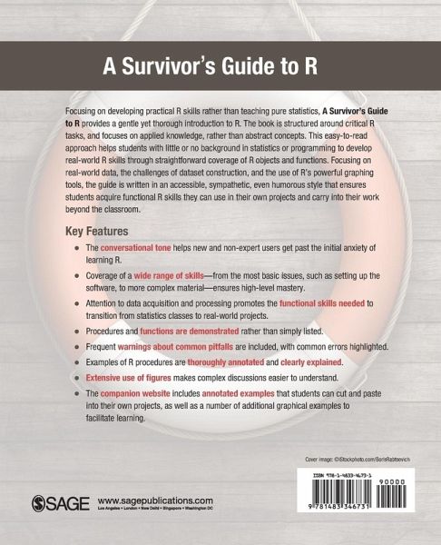Focusing on developing practical R skills rather than teaching pure statistics, Dr. Kurt Taylor Gaubatz’s A Survivor’s Guide to R provides a gentle yet thorough introduction to R. The book is structured around critical R tasks, and focuses on applied knowledge, rather than abstract concepts. Gaubatz’s easy-to-read approach helps students with little or no background in statistics or programming to develop real-world R skills through straightforward coverage of R objects and functions. Focusing on real-world data, the challenges of dataset construction, and the use of R’s powerful graphing tools, the guide is written in an accessible, sympathetic, even humorous style that ensures students acquire functional R skills they can use in their own projects and carry into their work beyond the classroom.