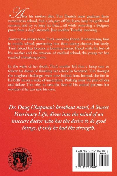 After his mother dies, Tim Daniels must graduate from veterinarian school, find a job, pay-off his loans, keep his girlfriend content, and try to keep his head...all while removing a designer purse from a dog's stomach. Just another Tuesday morning... Anxiety has always been Tim's annoying friend. Embarrassing him in middle school, preventing him from taking chances, but lately, Tim's friend has become a looming enemy. Faced with the loss of his mother and the stressors of medical school, the young vet has reached a breaking point. In the wake of her death, Tim's mother left him a lump sum to follow his dream of finishing vet school in Scotland. Tim thought the toughest challenges were now behind him. Instead, the fire in his belly leaves a wake of uncertainty. Pushing away the pain of loss and failure, Tim tries to save the lives of his animal patients but wonders if he can save his own. Dr. Doug Chapman's breakout novel, A Sweet Veterinary Life, dives into the mind of an insecure doctor who has the desire to do good things, if only he had the strength.
