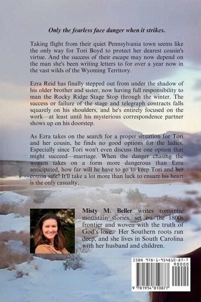 LARGE PRINT EDITION-Now with an extra bonus epilogue! Only the fearless face danger when it strikes. Taking flight from their quiet Pennsylvania town seems like the only way for Tori Boyd to protect her dearest cousin's virtue. And the success of their escape may now depend on the man she's been writing letters to for over a year now in the vast wilds of the Wyoming Territory. Ezra Reid has finally stepped out from under the shadow of his older brother and sister, now having full responsibility to man the Rocky Ridge Stage Stop through the winter. The success or failure of the stage and telegraph contracts falls squarely on his shoulders, and he's entirely focused on the work-at least until his mysterious correspondence partner shows up on his doorstep. As Ezra takes on the search for a proper situation for Tori and her cousin, he finds no good options for the ladies. Especially since Tori won't even discuss the one option that might succeed-marriage. When the danger chasing the women takes on a form more dangerous than Ezra anticipated, how far will he have to go to keep Tori and her cousin safe? It'll take a lot more than luck to ensure his heart is the only casualty. From a USA Today bestselling author comes another thrilling tale of love and courage on the western frontier.