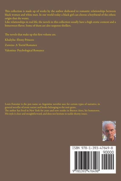 This collection is made up of works by the author dedicated to romantic relationships between black women and white men. In our world today a black girl can choose a boyfriend of the ethnic origin that she wants. Like relationships in real life, the novels in this collection usually have a high erotic content and a bittersweet flavor. Some of them are also suspense thrillers. The novels that make up this first volume are. Khaliyha- Ebony Princess Zuwena- A Torrid Romance Valentina- Psychological Romance