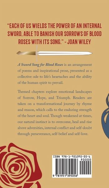 Joan Wiley is a unique and imaginative fiction writer and poet. Her work strongly relates to the struggle and power of the human spirit, using figurative language to create lyrical micro-stories with the idea of inspiring imaginative perspectives and imagery intertwined with strong emotion. A Sword Song for Blood Roses is filled with poetry and prose that acknowledges the personal battles we fight within ourselves as well as the external world. This book is a collective ode to our ability not only endure, but ultimately prevail. Heartache is a devil that comes to us in many forms and we have choices about how we will get through it. The natural instinct of the human spirit is to reckon with adversity and overcome it. We are fighters! Our will demands us to survive and thrive. "Each of us wields the power of an internal sword, able to banish our sorrows of blood roses with its song." --JOAN WILEY Themed chapters explore emotional landscapes of Sorrow, Hope, and Triumph. Readers are taken on a transformational journey by rhyme and reason, which speaks to the enduring strength of the heart and soul. Though weakened at times, an eternal fire of fortitude burns within each of us and demands we take action. Feelings of despair can cause us to want to give up - or look to others - or a higher power for help, and encouragement does help. It is a call to that which we must summon within ourselves, the strength we must raise in order to help ourselves. We conquer adversities, conflict, self-doubt and damaged self-esteem not by the coddling and kind words of others - but through perseverance, self-belief, and self-love. "Higher, high above I see, what glory lies out in front of me, and I prefer to appear the fool, to carry out this plan for destiny, ignoring those who seek to mold my reality. I am the power, wonder and will to succeed, belief is all and everything I need, the glory of hope flies inside of me." --Excerpt from "Hope Flies" Seven original drawings by the author are also included in the book lending imagery to associated poems.