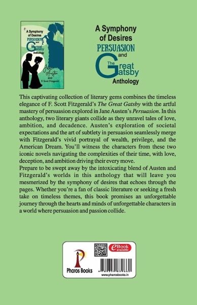 This captivating collection of literary gems combines the timeless elegance of F. Scott Fitzgerald's The Great Gatsby with the artful mastery of persuasion explored in Jane Austen's Persuasion. In this anthology, two literary giants collide as they unravel tales of love, ambition, and decadence. Austen's exploration of societal cxpectations and the art of subtlety in persuasion seamlessly merge with Fitzgerald's vivid portrayal of wealth, privilege, and the American Dream. You'll witness the characters from these two iconic novels navigating the complexities of their time, with love, deception, and ambition driving their every move. Prepare to be swept away by the intoxicating blend of Austen and Fitzgerald's worlds in this anthology that will leave you mesmerized by the symphony of desires that echoes through the pages. Whether you're a fan of classic literature or seeking a fresh take on timeless themes, this book promises an unforgettable journey through the hearts and minds of unforgettable characters in a world where persuasion and passion collide.