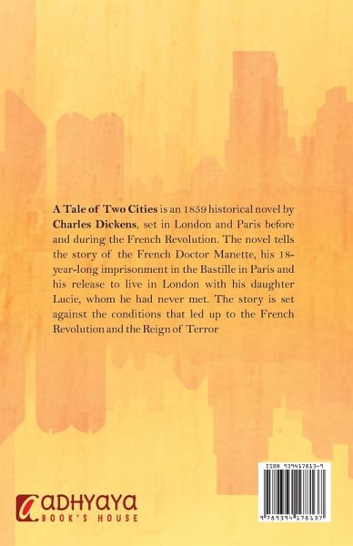 A Tale of Two Cities is an 1859 historical novel by Charles Dickens, set in London and Paris before and during the French Revolution. The novel tells the story of the French Doctor Manette, his 18-year-long imprisonment in the Bastille in Paris, and his release to live in London with his daughter Lucie whom he had never met. The story is set against the conditions that led up to the French Revolution and the Reign of Terror. In the Introduction to the Encyclopedia of Adventure Fiction, critic Don D'Ammassa argues that it is an adventure novel because the protagonists are in constant danger of being imprisoned or killed.