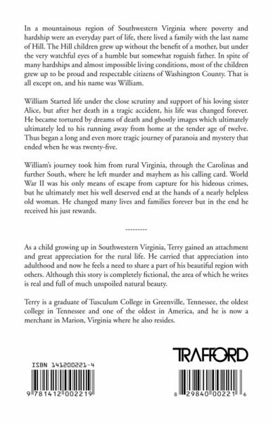 As a child growing up in Southwestern Virginia, Terry gained an attachment and great appreciation for the rural life. He carried that appreciation into adulthood and now he feels a need to share a part of his beautiful region with others. Although this story is completely fictional, the area of which he writes is real and full of much unspoiled natural beauty. Terry is a graduate of Tusculum College in Greenville, Tennessee, the oldest college in Tennessee and one of the oldest in America, and he is now a merchant in Marion, Virginia where he also resides.