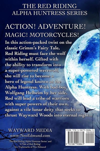 WEREWOLVES & MOTORCYCLES & MONSTERS! OH MY! In this action-packed twist on the classic Grimm's Fairy Tale, Red Riding Hood speeds into Wayward Woods on her motorcycle, hoping to find her granny and unlock the secrets of her forgotten past. She soon learns that she has been gifted with magical werewolf super powers and must rise up to become the legendary Alpha Huntress. With bad-boy heartthrob Wolfgang Helheim and a squad of magical powered heroes by her side, she must save Wayward Woods from evil werewolves and mystical monsters of every kind.