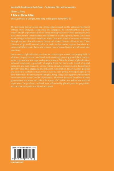 In the context of globalization, the cities are competing on a more even playing field. In addition, city governments worldwide are increasingly pursuing growth, land markets, urban regeneration, and large-scale public projects. With the advent of globalization, urban development is gradually changing from the past crude model of spatial expansion and land finance to a more refined model of socioeconomic development driven by industrial upgrading and enhanced consumption. However, cities' political and economic contexts and governance systems vary greatly. Unsurprisingly, given their differences, the three cities of Shanghai, Hong Kong, and Singapore demonstrated varied responses to the COVID-19 pandemic. This book discusses the efforts of these governments to address and reduce the spread of COVID-19 as well as how national responses to the pandemic outbreak were influenced by global dynamics, geopolitics, and each nation's particular historical context.