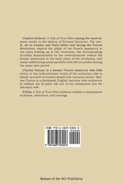 Charles Dickens' A Tale of Two Cities among the most famous works in the history of fictional literature. The novel, set in London and Paris before and during the French Revolution, depicts the plight of the French peasantry in the years leading up to the revolution, the corresponding brutality demonstrated by the revolutionaries toward the former aristocrats in the early years of the revolution, and many unflattering social parallels with life in London during the same time period. Charles Darnay is a former French aristocrat who falls victim to the indiscriminate wrath of the revolution who is falsely accused of treason despite his virtuous nature. Sydney Carton is a dissipated English barrister who endeavors to redeem his ill-spent life out of his unrequited love for Darnay's wife. Within A Tale of Two Cities Dickens unfolds a masterpiece of drama, adventure, and courage.