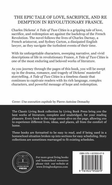 Charles Dickens' A Tale of Two Cities is a gripping tale of love, sacrifice, and redemption set against the backdrop of the French Revolution. The novel follows the lives of Charles Darnay, a French aristocrat, and Sydney Carton, a dissipated English lawyer, as they navigate the turbulent events of their time. With its unforgettable characters, sweeping narrative, and vivid descriptions of life in revolutionary France, A Tale of Two Cities is one of the most enduring and beloved works of literature. As you journey through the pages of this book, you will be swept up in the drama, romance, and tragedy of Dickens' masterful storytelling. A Tale of Two Cities is a timeless classic that continues to captivate readers with its rich language, complex characters, and powerful message of hope and redemption.