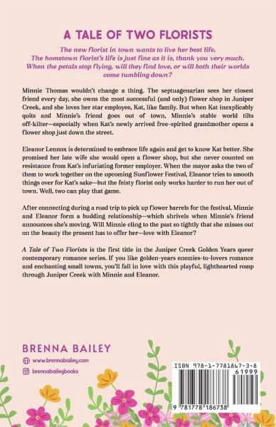 The new florist in town wants to live her best life. The hometown florist's life is just fine as it is, thank you very much. When the petals stop flying, will they find love, or will both their worlds come tumbling down? ¿¿Minnie Thomas wouldn't change a thing. The septuagenarian sees her closest friend every day, she owns the most successful (and only) flower shop in Juniper Creek, and she loves her star employee, Kat, like family. But when Kat inexplicably quits and Minnie's friend goes out of town, Minnie's stable world tilts off-kilter-especially when Kat's newly arrived free-spirited grandmother opens a flower shop just down the street. Eleanor Lennox is determined to embrace life again and get to know Kat better. She promised her late wife she would open a flower shop, but she never counted on resistance from Kat's infuriating former employer. When the mayor asks the two of them to work together on the upcoming Sunflower Festival, Eleanor tries to smooth things over for Kat's sake-but the feisty florist only works harder to run her out of town. Well, two can play that game. After connecting during a road trip to pick up flower barrels for the festival, Minnie and Eleanor form a budding relationship-which shrivels when Minnie's friend announces she's moving. Will Minnie cling to the past so tightly that she misses out on the beauty the present has to offer her-love with Eleanor? A Tale of Two Florists is the first title in the Juniper Creek Golden Years queer contemporary romance series. If you like golden-years enemies-to-lovers romance and enchanting small towns, you'll fall in love with this playful, lighthearted romp through Juniper Creek with Minnie and Eleanor.
