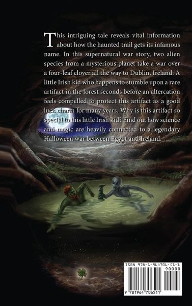 This intriguing tale reveals vital information about how the haunted trail gets its infamous name. In this supernatural war story, two alien species from a mysterious planet take a war over a four-leaf clover all the way to Dublin, Ireland. A little Irish kid who happens to stumble upon a rare artifact in the forest seconds before an altercation feels compelled to protect this artifact as a good luck charm for many years. Why is this artifact so special to this little Irish kid? Find out how science and magic are heavily connected to a legendary Halloween war between Egypt and Ireland.