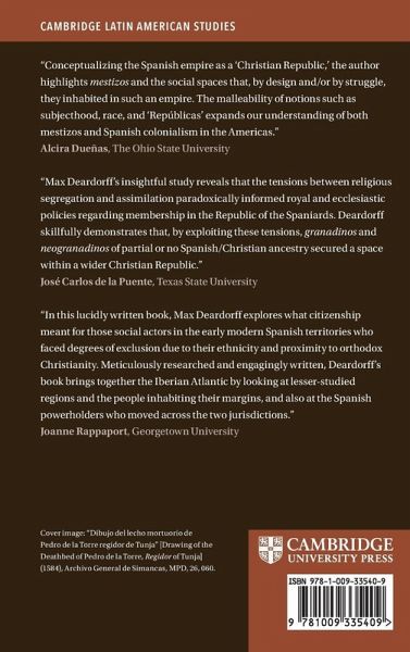 List of figures List of tables Acknowledgments Introduction 1. Iberian antecedents 2. Politics, reform, and the emergence of Christian citizenship 3. Moriscos, Arabic Old Christians, and Spanish jurisprudence (1492-1614) 4. Cultivating the Christian republic: the New Kingdom of Granada and the Archbishop Zapata de Cárdenas 5. Life in the city: the casa poblada and urban citizenship 6. The roots of the mestizo controversy in the New Kingdom of Granada 7. The mestizo priesthood 8. Mestizo officials in the Christian republic 9. Urban Indians in Santafé and Tunja, 1568-1668 Epilogue Bibliography Index.