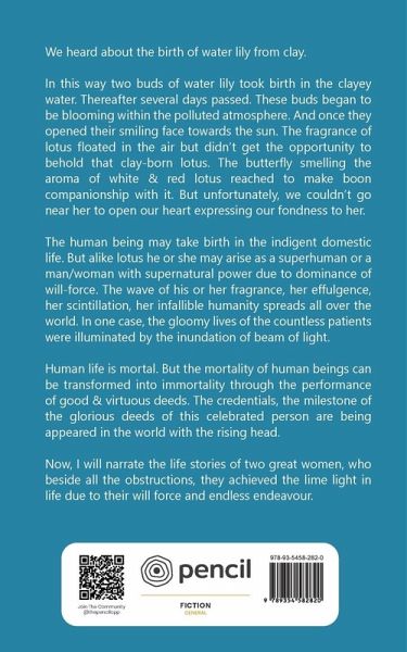 We heard about the birth of water lily from clay. In this way two buds of water lily took birth in the clayey water. Thereafter several days passed. These buds began to be blooming within the polluted atmosphere. And once they opened their smiling face towards the sun. The fragrance of lotus floated in the air but didn't get the opportunity to behold that clay-born lotus. The butterfly smelling the aroma of white & red lotus reached to make boon companionship with it. But unfortunately, we couldn't go near her to open our heart expressing our fondness to her. The human being may take birth in the indigent domestic life. But alike lotus he or she may arise as a superhuman or a man/woman with supernatural power due to dominance of will-force. The wave of his or her fragrance, her effulgence, her scintillation, her infallible humanity spreads all over the world. In one case, the gloomy lives of the countless patients were illuminated by the inundation of beam of light. Human life is mortal. But the mortality of human beings can be transformed into immortality through the performance of good & virtuous deeds. The credentials, the milestone of the glorious deeds of this celebrated person are being appeared in the world with the rising head. Now, I will narrate the life stories of two great women, who beside all the obstructions, they achieved the lime light in life due to their will force and endless endeavour.