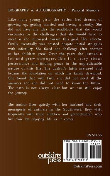 A Tapestry of Life is the true story of a woman who, in her quest to fulfill her dreams and have the family that she had always imagined, struggled with pain, disillusionment and heartbreak but came through it with an understanding of the rich beauty of life. Like many young girls growing up in the 1950's and 1960's, Daphne had dreams of growing up, getting married and having a family. She had well-organized plans for her future. She did not have any concept of the roadblocks that she would encounter or the challenges that she would have to meet as she journeyed toward this goal. Through a diagnosis of infertility and decisions about fertility treatments, to pursuit of adoption, to marrying and acquiring step children, to eventually achieving a pregnancy and then to gaining a daughter through an informal foster care situation she eventually created her eclectic family. Despite her dreams of having children who transitioned easily into adulthood, her children each seemed to have some struggle to overcome. The family faced challenges including developmental disabilities, cancer, drug abuse, alcohol abuse, anorexia, bi-polar disorder and teen pregnancy. Over the years Daphne learned a lot and grew stronger. This is a story about perseverance and finding peace in the unpredictable nature of this life. The author's faith matured through the challenges and struggles and became the foundation on which her family developed. She found that with faith she did not need all the answers and she did not need to know the future. She learned that the path is not always clear but we can still enjoy the journey.