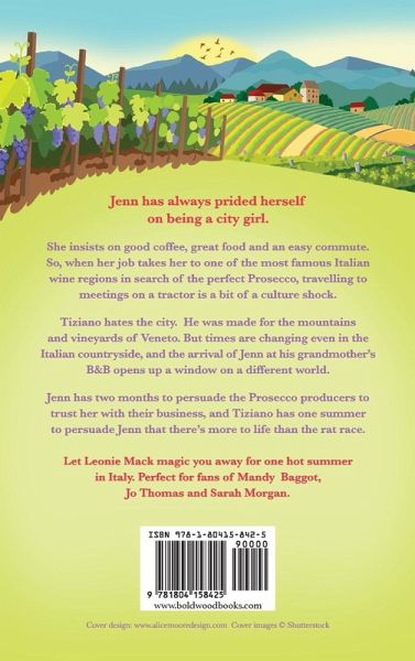 'An utterly gorgeous romantic read!' Sandy Barker Jenn has always prided herself on being a city girl - she insists on easy access to good coffee, great food from around the globe, not to mention an easy commute. So, when her job takes her to one of the most famous Italian wine regions in search of the perfect Prosecco, travelling to meetings on a tractor is a bit of a culture shock. Tiziano hates the city. He was made for the mountains and vineyards of Veneto, and generations of his family have earned their living from the land. But times are changing even in the Italian countryside, and the arrival of Jenn at his grandmother's B&B opens up a window on a different world. Jenn has two months to persuade the Prosecco producers to trust her with their business, and Tiziano has one summer to persuade Jenn that there's more to life than the rat race. But can a city girl and a country boy ever find enough in common to see a future beyond one long summer of sun... Let Leonie Mack magic you away to the vineyards of Veneto for one hot summer in Italy. Perfect for fans of Mandy Baggot, Jo Thomas and Sarah Morgan. 'I love her beautiful settings and brooding heroes!' Sarah Bennett What readers are saying about Leonie Mack: 'The writing is warm, evocative, descriptive and painted a vivid picture in my mind. This book has a little bit of everything you could possibly want in a story, and I was just hooked.' 'This book was very heartwarming, with a great set of characters, all taking place in a wonderful setting - what more could you want from a book...' 'This is one of those books where you want to get to the end but you also don't want it to end because you know you're going to miss it when it's done. A great read.' 'Ah the romance - I really loved every moment, as the two main characters I'd really taken to my heart fought that magnetic pull between them when you really, really wanted them to have their happy ending. This was one of those perfect summer reads, but with a depth and emotion that was particularly satisfying - most definitely one I'd recommend to others.' 'A burst of pure joy... It has all the feel good elements needed for an irresistible romance you can't help but root for, even though you know the odds aren't in their favour! 'Beautifully written, this is a great take on the opposites attract theme.'