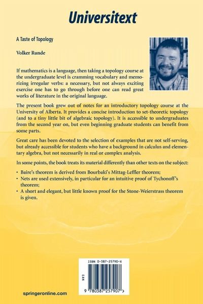 "This is an introduction to set-theoretic topology ... . Each section of each chapter ends with exercises and each chapter has a section with remarks of a historical nature and suggestions for further reading. I consider this 'Taste of Topology' an interesting universitext that will make the appetite of the students grow during the years." (Corina Mohorianu, Zentralblatt MATH, Vol. 1079, 2006)