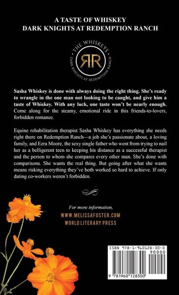 Sasha Whiskey is done being the good girl. She's ready to wrangle in the one man not looking to be caught and give him a taste of Whiskey. With any luck, one taste won't be nearly enough. Come along for the steamy, emotional ride in this friends-to-lovers, forbidden romance. Equine rehabilitation therapist Sasha Whiskey has everything she needs right there on Redemption Ranch-a job she's passionate about, a loving family, and Ezra Moore, the sexy single father who went from trying to nail her as a belligerent teen to keeping his distance as a successful therapist and the person to whom she compares every other man. She's done with comparisons. She wants the real thing. But going after what she wants means risking everything they've both worked so hard to achieve. If only dating co-workers weren't forbidden. From New York Times bestselling author Melissa Foster comes The Whiskeys: Dark Knights at Redemption Ranch, a small-town, big-family series of standalone romance novels featuring fiercely loyal, insanely sexy bikers who give horses-and people-a second chance. Buckle up for a wild ride in Hope Ridge, Colorado, as these big-hearted badasses and their sassy sisters wrangle in their forever loves. No cliffhangers, no cheating, and always a happily ever after. The Whiskeys: Dark Knights at Redemption Ranch The Trouble with Whiskey Freeing Sully (Prequel to For the Love of Whiskey) For the Love of Whiskey A Taste of Whiskey More coming soon... ** While you're waiting for more Dark Knights at Redemption Ranch, get to know their cousins. The Whiskeys: Dark Knights at Peaceful Harbor. Tru Blue Truly Madly Whiskey Driving Whiskey Wild Wicked Whiskey Love Mad About Moon Taming My Whiskey The Gritty Truth In for A Penny Running on Diesel The Wickeds: Dark Knights at Bayside A Little Bit Wicked The Wicked Aftermath Crazy, Wicked Love The Wicked Truth **Don't miss River of Love (The Bradens at Peaceful Harbor), the first story in which the Whiskeys at Peaceful Harbor were introduced, and Searching for Love (The Bradens & Montgomerys), the first story in which the Whiskeys at Redemption Ranch were introduced. Read the entire Love in Bloom big-family romance collection. Characters from each sub-series appear in future books/series. Snow Sisters The Bradens at Weston The Bradens at Trusty The Bradens at Peaceful Harbor The Bradens & The Montgomerys The Remingtons The Ryders Seaside Summers Bayside Summers The Steeles at Silver Island Sugar Lake (Kindle Unlimited) Harmony Pointe (Kindle Unlimited) Silver Harbor (Kindle Unlimited) Wild Billionaires After Dark Bad Billionaires After Dark Harborside Nights Tru Blue and The Whiskeys: Dark Knights at Peaceful Harbor The Wickeds: Dark Knights at Bayside