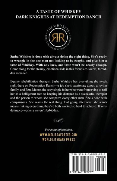 Sasha Whiskey is done being the good girl. She's ready to wrangle in the one man not looking to be caught and give him a taste of Whiskey. With any luck, one taste won't be nearly enough. Come along for the steamy, emotional ride in this friends-to-lovers, forbidden romance. Equine rehabilitation therapist Sasha Whiskey has everything she needs right there on Redemption Ranch-a job she's passionate about, a loving family, and Ezra Moore, the sexy single father who went from trying to nail her as a belligerent teen to keeping his distance as a successful therapist and the person to whom she compares every other man. She's done with comparisons. She wants the real thing. But going after what she wants means risking everything they've both worked so hard to achieve. If only dating co-workers weren't forbidden. From New York Times bestselling author Melissa Foster comes The Whiskeys: Dark Knights at Redemption Ranch, a small-town, big-family series of standalone romance novels featuring fiercely loyal, insanely sexy bikers who give horses-and people-a second chance. Buckle up for a wild ride in Hope Ridge, Colorado, as these big-hearted badasses and their sassy sisters wrangle in their forever loves. No cliffhangers, no cheating, and always a happily ever after. The Whiskeys: Dark Knights at Redemption Ranch The Trouble with Whiskey Freeing Sully (Prequel to For the Love of Whiskey) For the Love of Whiskey A Taste of Whiskey More coming soon... ** While you're waiting for more Dark Knights at Redemption Ranch, get to know their cousins. The Whiskeys: Dark Knights at Peaceful Harbor. Tru Blue Truly Madly Whiskey Driving Whiskey Wild Wicked Whiskey Love Mad About Moon Taming My Whiskey The Gritty Truth In for A Penny Running on Diesel The Wickeds: Dark Knights at Bayside A Little Bit Wicked The Wicked Aftermath Crazy, Wicked Love The Wicked Truth **Don't miss River of Love (The Bradens at Peaceful Harbor), the first story in which the Whiskeys at Peaceful Harbor were introduced, and Searching for Love (The Bradens & Montgomerys), the first story in which the Whiskeys at Redemption Ranch were introduced. Read the entire Love in Bloom big-family romance collection. Characters from each sub-series appear in future books/series. Snow Sisters The Bradens at Weston The Bradens at Trusty The Bradens at Peaceful Harbor The Bradens & The Montgomerys The Remingtons The Ryders Seaside Summers Bayside Summers The Steeles at Silver Island Sugar Lake (Kindle Unlimited) Harmony Pointe (Kindle Unlimited) Silver Harbor (Kindle Unlimited) Wild Billionaires After Dark Bad Billionaires After Dark Harborside Nights Tru Blue and The Whiskeys: Dark Knights at Peaceful Harbor The Wickeds: Dark Knights at Bayside