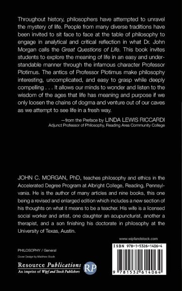 Throughout history, philosophers have attempted to unravel the mystery of life. People from many diverse traditions have been invited to sit face to face at the table of philosophy to engage in analytical and critical reflection in what Dr. John Morgan calls ""the great questions of life."" This book invites students to explore the meaning of life in an easy and understandable manner through the infamous character Professor Plotimus. The antics of Professor Plotimus make philosophy interesting, uncomplicated, and easy to grasp while deeply compelling . . . It allows our minds to wonder and listen to the wisdom of the ages that life has meaning and purpose if we only loosen the chains of dogma and venture out of our caves as we attempt to see life in a fresh way. --from the Preface by Linda Lewis Riccardi Adjunct Professor of Humanities and Philosophy, Reading Area Community College