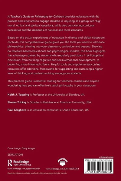 A Teacher's Guide to Philosophy for Children provides educators with the process and structures to engage children in inquiring as a group into 'big' moral, ethical and spiritual questions, while also considering curricular necessities and the demands of national and local standards. Based on the actual experiences of educators in diverse and global classroom contexts, this comprehensive guide gives you the tools you need to introduce philosophical thinking into your classroom, curriculum and beyond. Drawing on research-based educational and psychological models, this book highlights the advantages gained by students who regularly participate in philosophical discussion: from building cognitive and social/emotional development, to becoming more informed citizens. Helpful tools and supplementary online resources offer additional frameworks for supporting and sustaining a higher level of thinking and problem-solving among your students. This practical guide is essential reading for teachers, coaches and anyone wondering how you can effectively teach philosophy in your classroom.