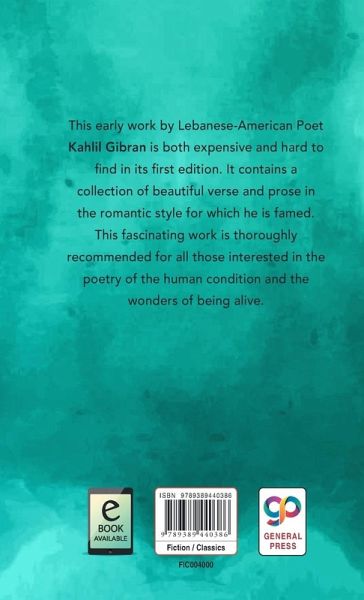 This early work by Lebanese-American Poet Kahlil Gibran is both expensive and hard to find in its first edition. It contains a collection of beautiful verse and prose in the romantic style for which he is famed. This fascinating work is thoroughly recommended for all those interested in the poetry of the human condition and the wonders of being alive.