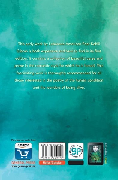 This early work by Lebanese-American Poet Kahlil Gibran is both expensive and hard to find in its first edition. It contains a collection of beautiful verse and prose in the romantic style for which he is famed. This fascinating work is thoroughly recommended for all those interested in the poetry of the human condition and the wonders of being alive. ABOUT THE AUTHOR: Kahlil Gibran was a Lebanese-American artist, poet, and writer, born in 1883 in Lebanon and died in New York in 1931. As a young man he emigrated with his family to the United States where he studied art and began his literary career. In the Arab world, Gibran is regarded as a literary and political rebel. His romantic style was at the heart of a renaissance in modern Arabic literature, especially prose poetry, breaking away from the classical school. In Lebanon, he is still celebrated as a literary hero. In his early teens, the artistry of Gibran's drawings caught the eye of his teachers and he was introduced to the avant-garde Boston artist, photographer, and publisher Fred Holland Day, who encouraged and supported Gibran in his creative endeavors. A publisher used some of Gibran's drawings for book covers in 1898, and Gibran held his first art exhibition in 1904 in Boston. In 1908, Gibran went to study art with Auguste Rodin in Paris for two years. He later studied art in Boston. While most of Gibran's early writing was in Arabic, most of his work published after 1918 was in English. He is chiefly known in the English-speaking world for his 1923 book 'The Prophet', an early example of inspirational fiction including a series of philosophical essays written in poetic English prose. The book sold well despite a cool critical reception, gaining popularity in the 1930s and again especially in the 1960s counterculture. Gibran is the third best-selling poet of all time, behind Shakespeare and Lao-Tzu.