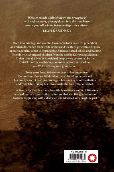 An honest and deeply personal story of how a privileged white woman deals with the realisationthat the children she grew up with were part of the Stolen Generation. Born into privilege and wealth in 1959, Amanda Webster is a sixth-generation Australian descended from white settlers and a third-generation resident of Kalgoorlie. When she turned five Amanda startedschool at Kalgoorlie where she met and befriended Aboriginal children from the nearby KurrawangMission, established in 1952 – with the help of the Department of Native Affairs – by Brethrenmissionaries. At that time the affairs of Aboriginal people were controlled by the Chief Protector, noneother than Webster’s very own grandfather. Forty years later, Webster returns to her hometown to reconnect with her former friends, and to piecetogether Kurrawang’s story. Webster confronts her racist blunders, her cultural ignorance and her family’ssecret past, beginning a journey of reconciliation that will take her well outside her comfort zone and into a world she hardly knew existed. A Tear in the Soul is a frank, beautifully written account of Webster’s personal journey towards the realisation that she, like generations of Australians, grew up with a distorted and idealised version of the past. This book, shattering many of the myths about modern Australia’s history, will shock, move and anger yet give a sense of hope for the future.