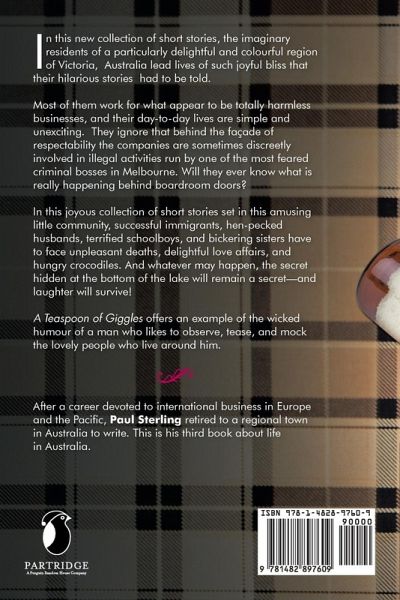 In this new collection of short stories, the imaginary residents of a particularly colourful region of Victoria in Australia lead lives of such sheer oddness that their stores had to be told. Most of them work without great enthusiasm for apparently harmless businesses. They ignore that, the companies are secretly involved in illegal activities run by one of the most feared criminal bosses in Melbourne. In this rollicking collection of short stories set in this eccentric little community, successful immigrants, hen-pecked husbands, terrified schoolboys, and bickering sisters have to figure out what to do when unpleasant deaths, delightful love affairs, and hungry crocodiles settle in. And whatever may happen, the secret hidden at the bottom of the lake will remain a secret-and laughter will survive! A Teaspoon of Giggles offers an example of the wicked humour of a man who likes to observe, tease, and mock the lovely people who live around him.