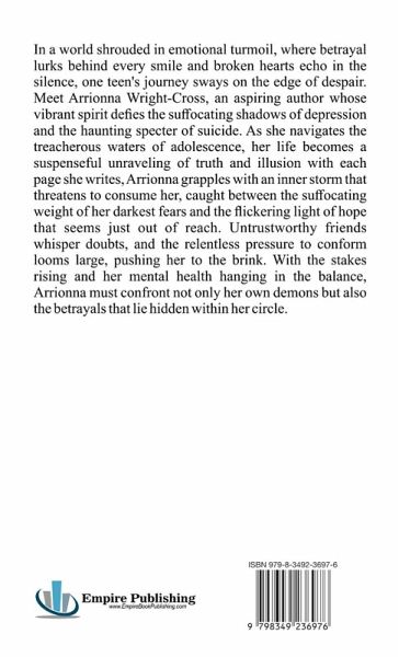 In a world shrouded in emotional turmoil, where betrayal lurks behind every smile and broken hearts echo in the silence, one teen's journey sways on the edge of despair. Meet Arrionna Wright-Cross, an aspiring author whose vibrant spirit defies the suffocating shadows of depression and the haunting specter of suicide. As she navigates the treacherous waters of adolescence, her life becomes a suspenseful unraveling of truth and illusion with each page she writes, Arrionna grapples with an inner storm that threatens to consume her, caught between the suffocating weight of her darkest fears and the flickering light of hope that seems just out of reach. Untrustworthy friends whisper doubts, and the relentless pressure to conform looms large, pushing her to the brink. With the stakes rising and her mental health hanging in the balance, Arrionna must confront not only her own demons but also the betrayals that lie hidden within her circle.