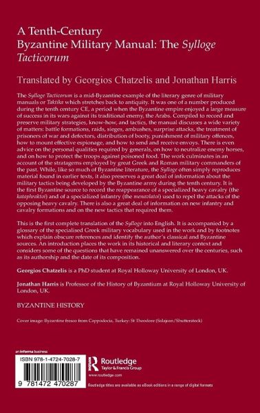 "As the first complete English translation of this text, this book is a welcome addition to the canon of accessible medieval Byzantine military manuals ... The book is also a welcome resource in part because the sources of each section are clearly cited and because it is also explained when there is no source or the author of the manual makes an unsubstantiated claim ... What makes this translation especially useful for historians of the tenth century is its status as a record of transitional tactical thought at a time when the Byzantines were adapting strategies in response to raids across territorial boundaries against both the Arabs and the Bulgars. Additionally, because some of the material here is based on a lost source or sources, it presents information and details new to the growing domain of English-language scholarship on Byzantine military manuals ... a pleasure to read."
