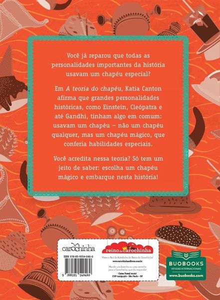 Você já reparou que todas as personalidades importantes da história usavam um chapéu especial? Sim, é verdade! Nesse livro, Katia Canton nos surpreende com uma teoria pra lá de inusitada. Segundo ela, gênios e líderes como Einstein, Cleópatra e até mesmo Gandhi usavam chapéus peculiares, feitos especialmente para eles, e que lhes conferiam poderes quase mágicos responsáveis ¿ pelo sucesso de seus feitos e invenções.