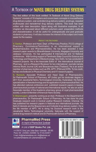 The first edition of this book entitled "A Textbook of Novel Drug Delivery Systems" consists of 10 chapters and covers basic concepts in mucoadhesive drug delivery system, oral controlled drug delivery system, prodrugs, resealed erythrocytes and transdermal drug delivery systems. This book has been written with clear description, figure along with illustrative examples. In all chapters we discussed about different polymers used, preparation methods and characterization. It will be useful for undergraduate and post graduate students in pharmacy. It will also increase the interest of this subject and made easier for the readers