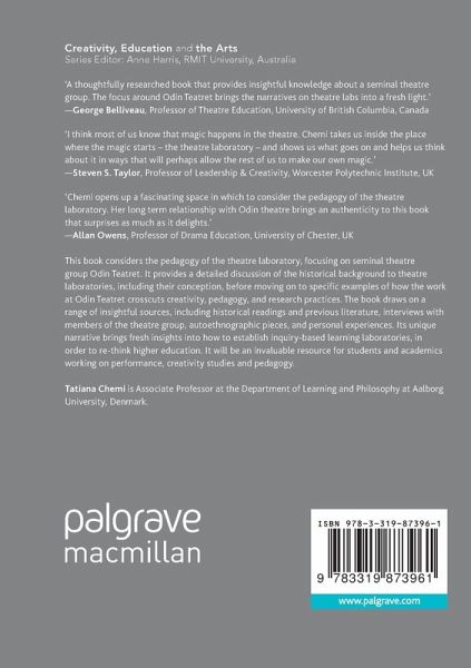 This book considers the pedagogy of the theatre laboratory, focusing on seminal theatre group Odin Teatret. It provides a detailed discussion of the historical background to theatre laboratories, including their conception, before moving on to specific examples of how the work at Odin Teatret crosscuts creativity, pedagogy, and research practices. The book draws on a range of insightful sources, including historical readings and previous literature, interviews with members of the theatre group, autoethnographic pieces, and personal experiences. Its unique narrative brings fresh insights into how to establish inquiry-based learning laboratories, in order to re-think higher education. It will be an invaluable resource for students and academics working on performance, creativity studies and pedagogy.