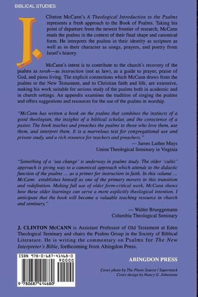 In a fresh approach to the Book of Psalms, McCann reads them in the context of their final shape and canonical form. He interprets the Psalms in their identity as Scripture as well as in their character as songs, prayers, and poetry from Israel's history. "A solid, balanced, and helpful introduction to the Book of Psalms".--Patrick D. Miller, Princeton Theologial Seminary.