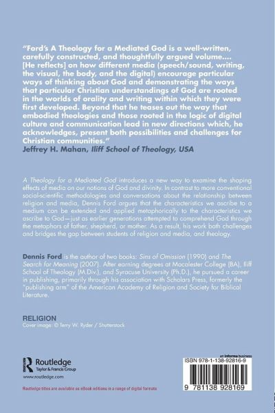 A Theology for a Mediated God introduces a new way to examine the shaping effects of media on our notions of God and divinity. In contrast to more conventional social-scientific methodologies and conversations about the relationship between religion and media, Dennis Ford argues that the characteristics we ascribe to a medium can be extended and applied metaphorically to the characteristics we ascribe to God-just as earlier generations attempted to comprehend God through the metaphors of father, shepherd, or mother. As a result, his work both challenges and bridges the gap between students of religion and media, and theology.