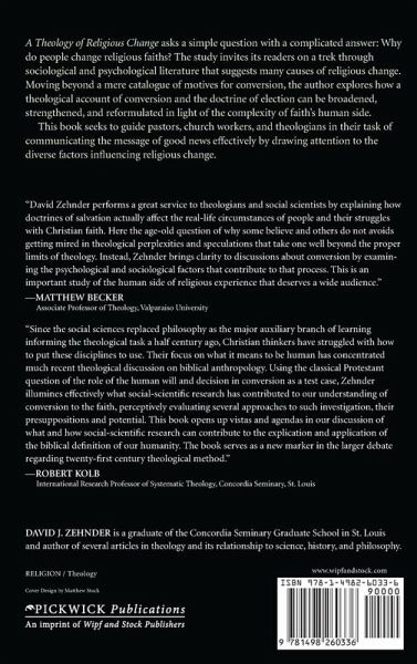 A Theology of Religious Change asks a simple question with a complicated answer: Why do people change religious faiths? The study invites its readers on a trek through sociological and psychological literature that suggests many causes of religious change. Moving beyond a mere catalogue of motives for conversion, the author explores how a theological account of conversion and the doctrine of election can be broadened, strengthened, and reformulated in light of the complexity of faith's human side. This book seeks to guide pastors, church workers, and theologians in their task of communicating the message of good news effectively by drawing attention to the diverse factors influencing religious change.