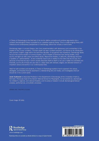 A Theory of Dramaturgy is the first text of its kind to define concepts and combine arguments into a coherent dramaturgical theory supported by an operative systems theory. This is a wide-ranging theory with historical and contemporary perspectives on dramaturgy, rather than simply a how-to book. Dramaturgy began in ancient Greece, born from experimentation with democracy and commentary in the theatre on the human condition. The term itself has seen constant evolution, but thanks to its introduction into common English usage within the last three decades, it has gained new importance. Dramaturgy draws focus to the communication of communication, and in theatre it examines how moving bodies, voice, sound, and light can tell a story and affect values. Beyond the theatre, in daily life, dramaturgy becomes a question of "performativity", as we constantly have to act in relation to the roles that we occupy. It is because of this that the way in which society describes itself to itself is not just a matter for scientists and theorists, but for all of those who are met on a daily basis with devised, staged, and directed versions of important values and events in our contemporary lives. Ideal for both scholars and students, A Theory of Dramaturgy explains how to approach the values, strategies, and theories that are essential to understanding arts and media, and investigates what art should do in the current world.